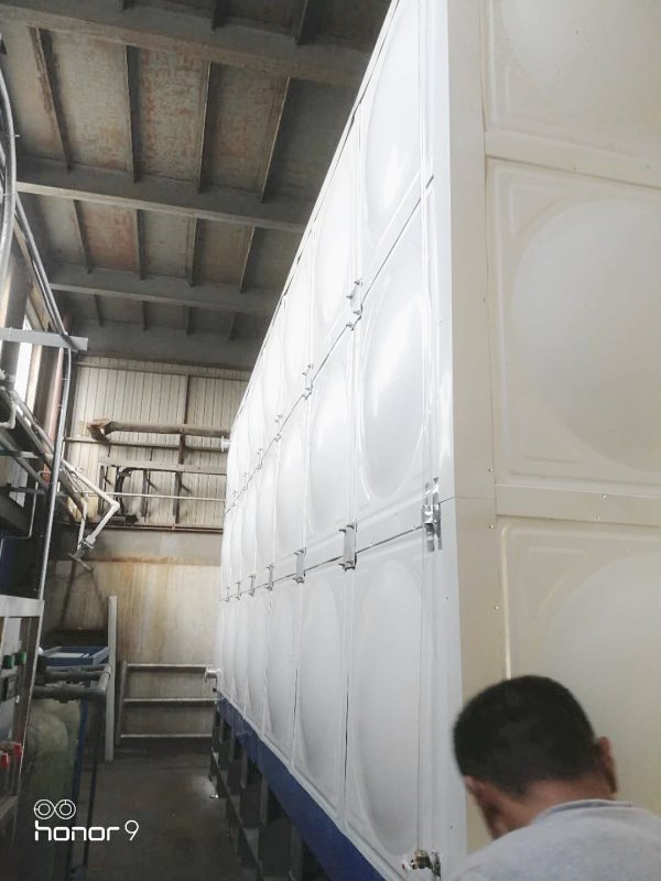 105立方玻璃鋼水箱安裝完畢,經過試水實驗合格,施工安裝人員已撤離現場,水箱驗收完畢,得到了工廠領導對我公司產品認可。產品生產,經過發貨和安裝經歷了工期完成應縣化工廠消防玻璃鋼水箱驗收完工。后面有現場安裝圖片: