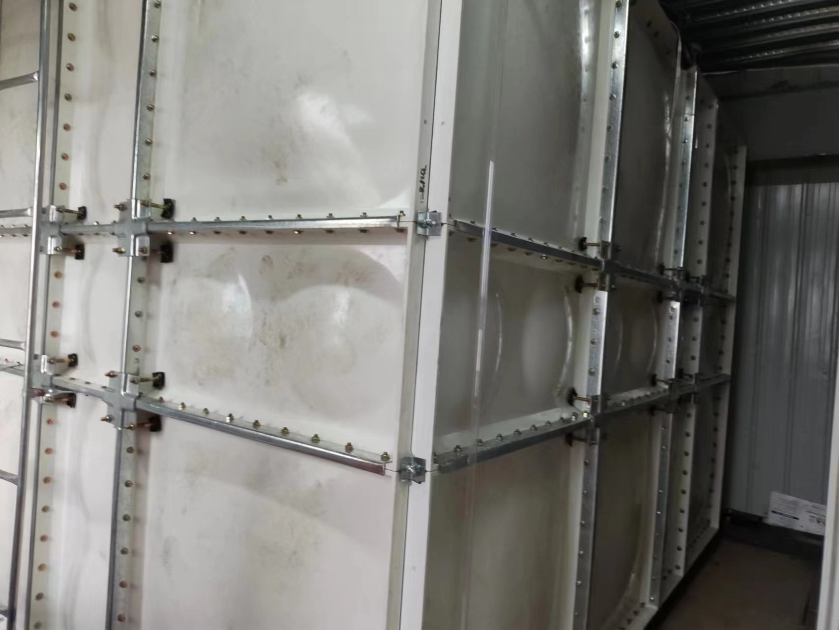 我司承接的山東省德州市平原縣紡興纖維廠地震災后重建項目,21.9立方SMC玻璃鋼消防水箱已經安裝試水完成。SMC組合式玻璃鋼水箱是一種普遍采用的儲水方式。是由SMC單元板現場組裝而成的一種水箱。單元板用SMC(sheet moulding compound)片材在高溫高壓下模壓成型,水箱內采用加強式支撐,其鋼配件選用熱鍍鋅件和不銹鋼件均可。板塊厚度的選取依據板塊所受的壓力和所處的位置。有5mm、8mm、10mm、12mm、14mm、16mm等。