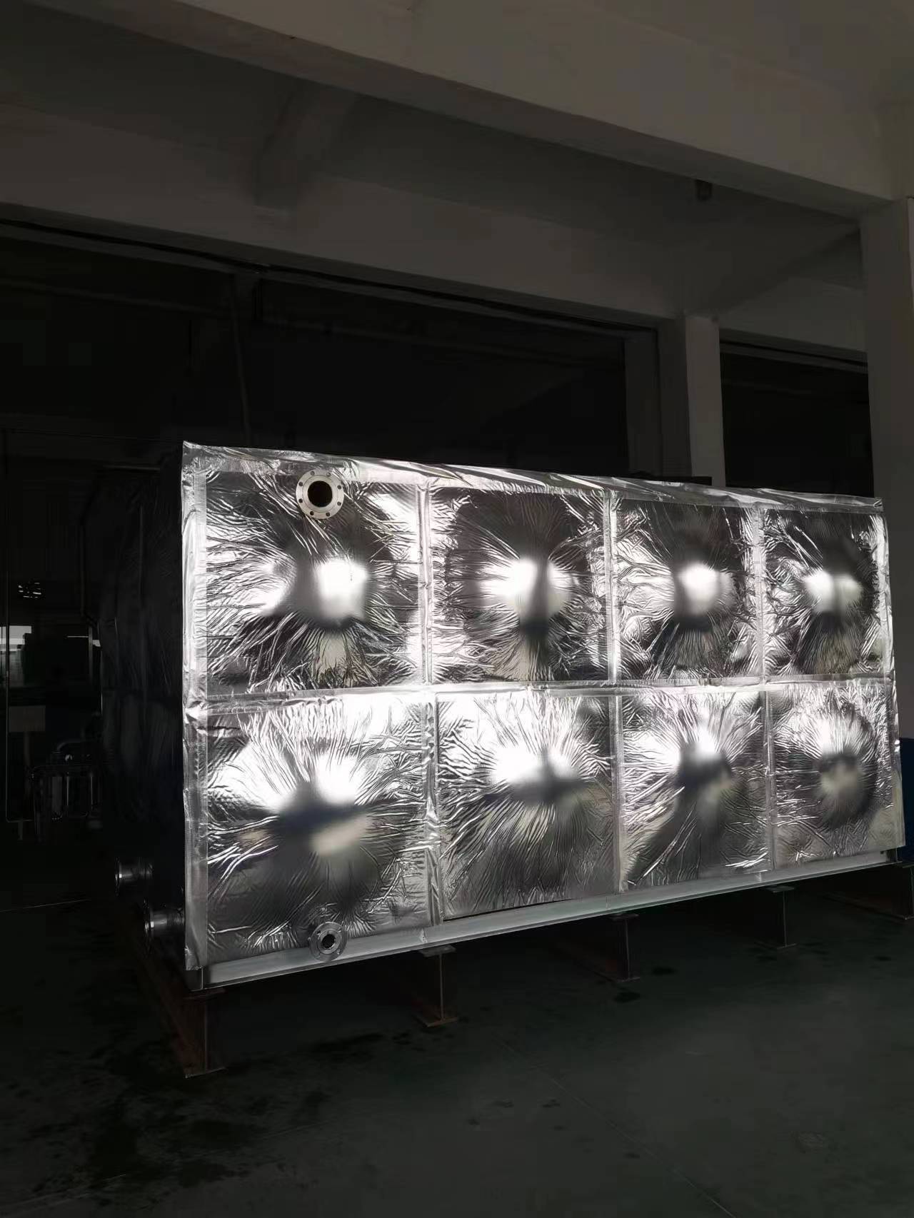 我司承接的山東省濱州市惠民縣山東蔚藍(lán)生物科技有限公司項(xiàng)目的不銹鋼保溫水箱已安裝試水完成。不銹鋼水箱具有重量輕、不銹蝕、不滲漏、性不銹鋼水箱、水質(zhì)好、使用范圍廣、使用壽命長、外形美觀、安裝方便、清洗維修簡便、適應(yīng)性強(qiáng)等特點(diǎn)。并且任意組合,造型應(yīng)用戶要求,容積可滿足設(shè)計(jì)要求,安裝現(xiàn)場無特殊要求,可提供保溫服務(wù)。不銹鋼水箱符合消防、建筑基準(zhǔn)法 在大樓發(fā)生火災(zāi)時(shí),與玻璃鋼容器比較更明的優(yōu)點(diǎn)是不銹鋼槽也同時(shí)可以起到初期滅火用供水箱的作用,這是符合有關(guān)消防、建筑基準(zhǔn)法的。不銹鋼水箱輕便而強(qiáng)度高 SUS的屈服強(qiáng)度相當(dāng)于碳素鋼的1.5倍,玻璃鋼的6倍,對(duì)于耐震、耐積雪、耐風(fēng)壓、耐沖擊等具有出類拔萃的優(yōu)良性。
