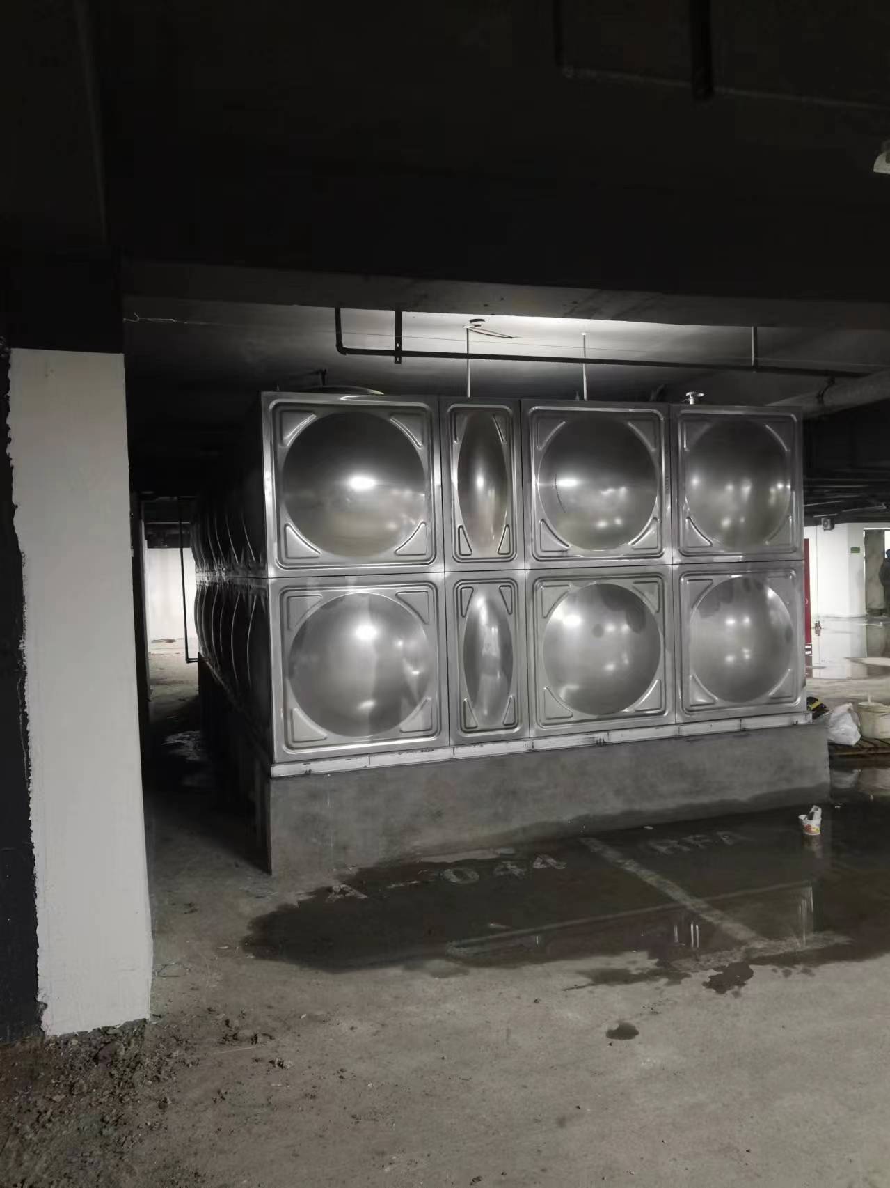 我司承接的河南省商丘市睢陽區吾悅廣場人防水箱項目已完工,此水箱采用的是SUS-304不銹鋼材質。不銹鋼水箱是由單元矩型模壓板制作而成的,通過材料變型的方法達到強度的效果,還可以任意拼裝,利用少的耗材做成完成品,這樣節能又環保。