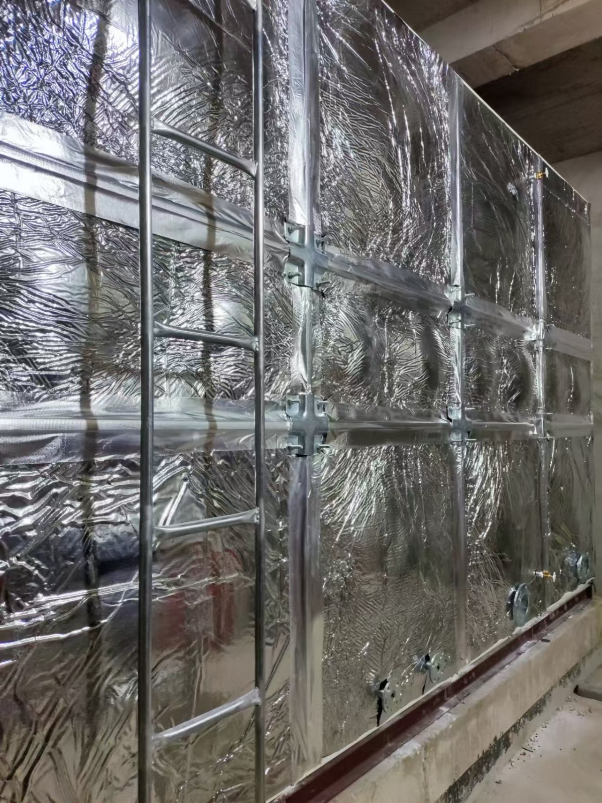 在玻璃鋼水箱外包裹橡塑鋁箔布兩者結合,可以提高整體的防水、防潮性能,能大大減少水箱內熱水向外界環境的熱量散失,保持水箱內水溫的穩定,降低熱水供應系統的能耗,提高能源利用效率 。廣泛應用于家庭、酒店、賓館、學校、醫院等場所需要對熱水進行儲存和循環使用,橡塑鋁箔布保溫玻璃鋼水箱可以滿足熱水系統的保溫需求 。